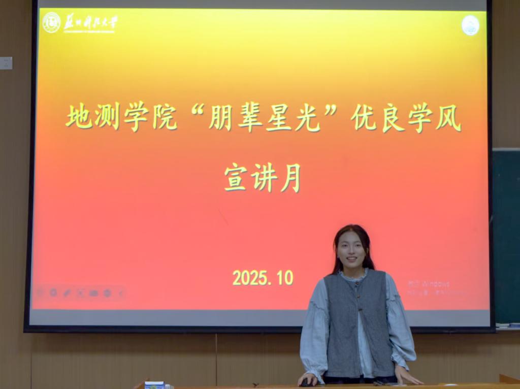 为落实立德树人根本任务,发挥榜样示范作用,10月27日,地测学院邀请9名获保研、国家奖学金及特等奖学金的优秀学子组成宣讲团,在天-J4、J7举办“朋辈星光”优良学风建设宣讲会。学院党委副书记彭科、辅导员苏玲、庄淑怡与全体大一新生参会。