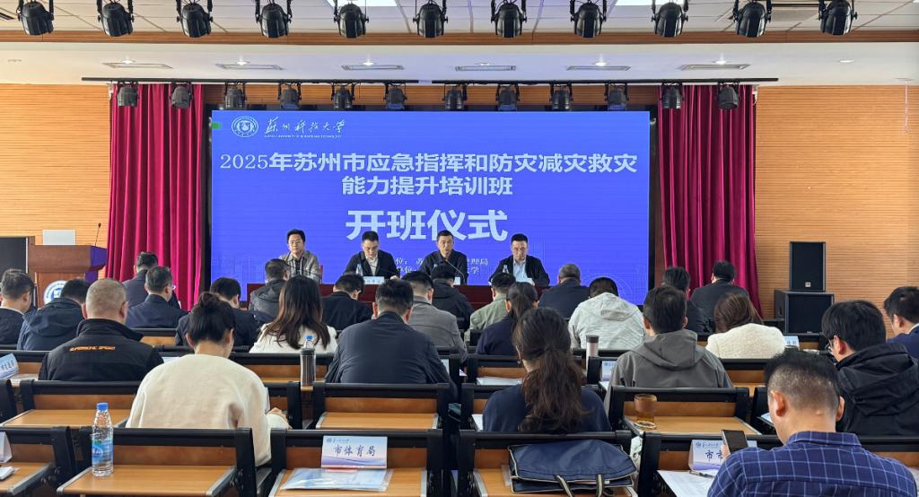 11月5-7日,2025年苏州市应急指挥和防灾减灾救灾能力提升培训班在苏州科技大学石湖校区正式开班。苏州市应急管理局副局长郭军波,减灾处处长王鹏、地测学院党委书记姚之彦、继续教育学院副院长、继续教育处副处长江一平出席开班仪式。