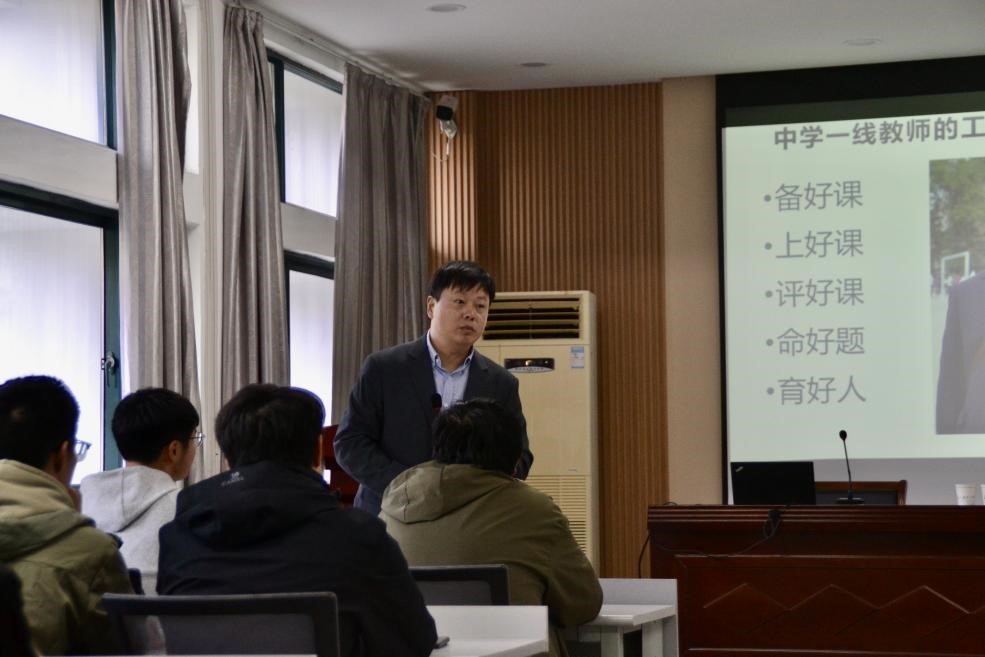 2025年11月15日下午,我校地测学院报告厅气氛热烈,一场题为“地理师范生如何带着理念去设计课及其成果转化”的专题讲座在此举行。会议由地理科学系主任张晓芳主持,特邀苏州工业园区景城学校高级教师、苏州工业园区初中地理兼职教研员朱庆龙老师担任主讲,为各年级地理师范生传经送宝。